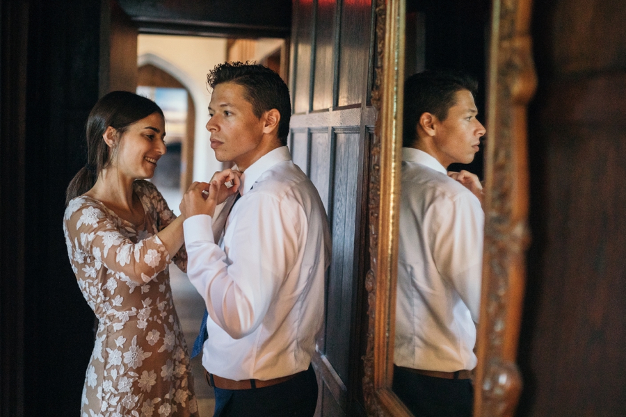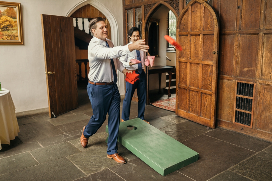 Sunny and Evan’s wedding at Cloisters Castle in Maryland was a joyful celebration filled with laughter, dancing, and nonstop energy. Set against the romantic, historic backdrop of the castle, their day felt whimsical and effortlessly fun from start to finish. Evan’s blue suit jacket paired