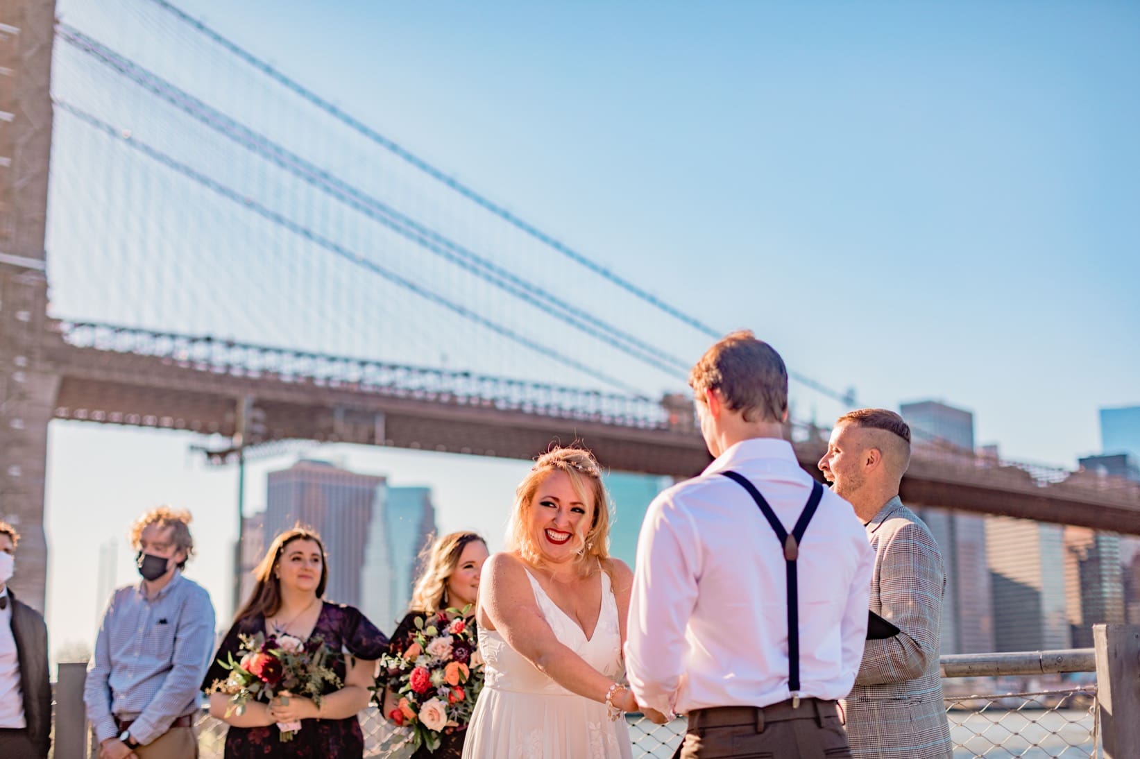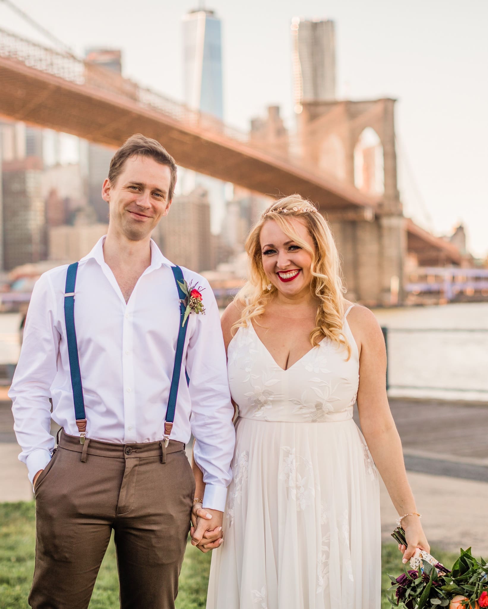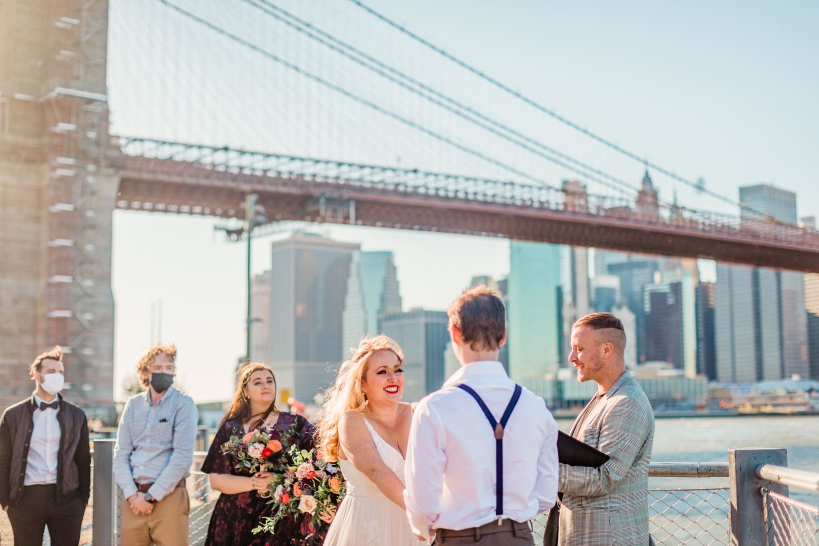 Rachael and Nathan had originally planned their full size wedding for October 2020, but then, well, you know, 2020 happened. We photographed their beautiful micro-wedding at Brooklyn Bridge Park with their closest friends safely in attendance. After their ceremony they had an adorable socially distant picnic under the Brooklyn Bridge to celebrate. Next year we’ll see them at The Inn at Fernbrook Farms for their full size wedding and we can’t wait!
