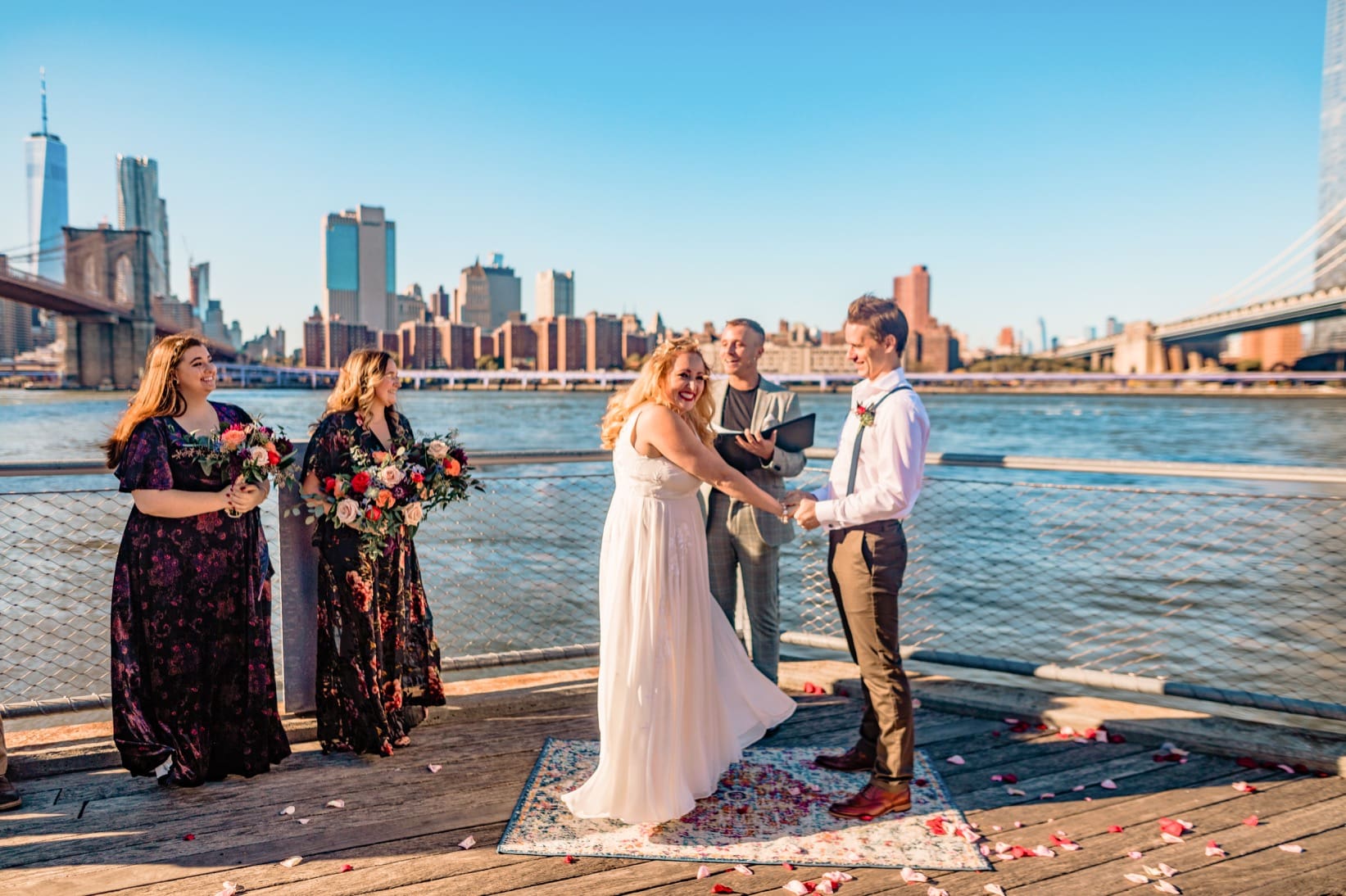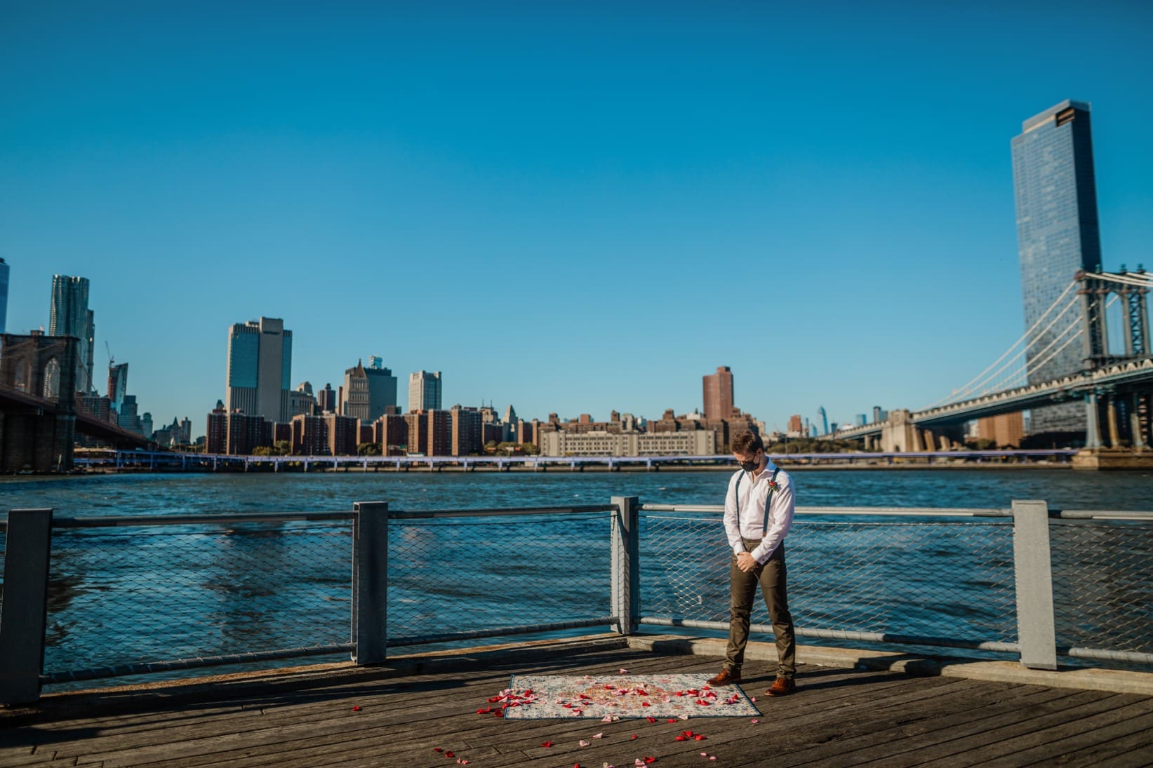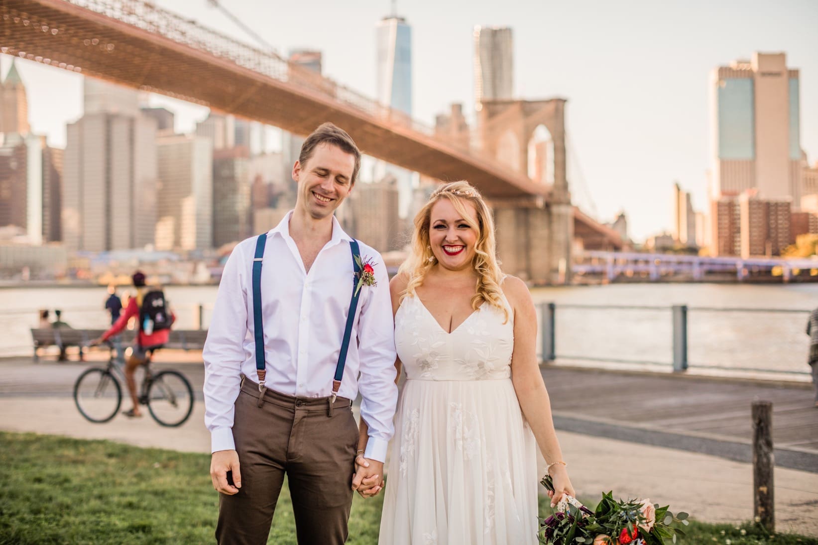 Rachael and Nathan had originally planned their full size wedding for October 2020, but then, well, you know, 2020 happened. We photographed their beautiful micro-wedding at Brooklyn Bridge Park with their closest friends safely in attendance. After their ceremony they had an adorable socially distant picnic under the Brooklyn Bridge to celebrate. Next year we’ll see them at The Inn at Fernbrook Farms for their full size wedding and we can’t wait!