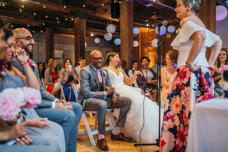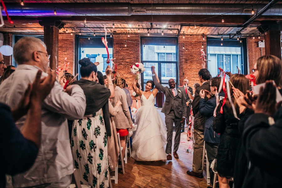 When a blog post starts with a couple giving each other a high five and ends with them chest bumping, you know we are excited to share it. Check out Melinda and Adam’s beautiful wedding at The Dumbo Loft.