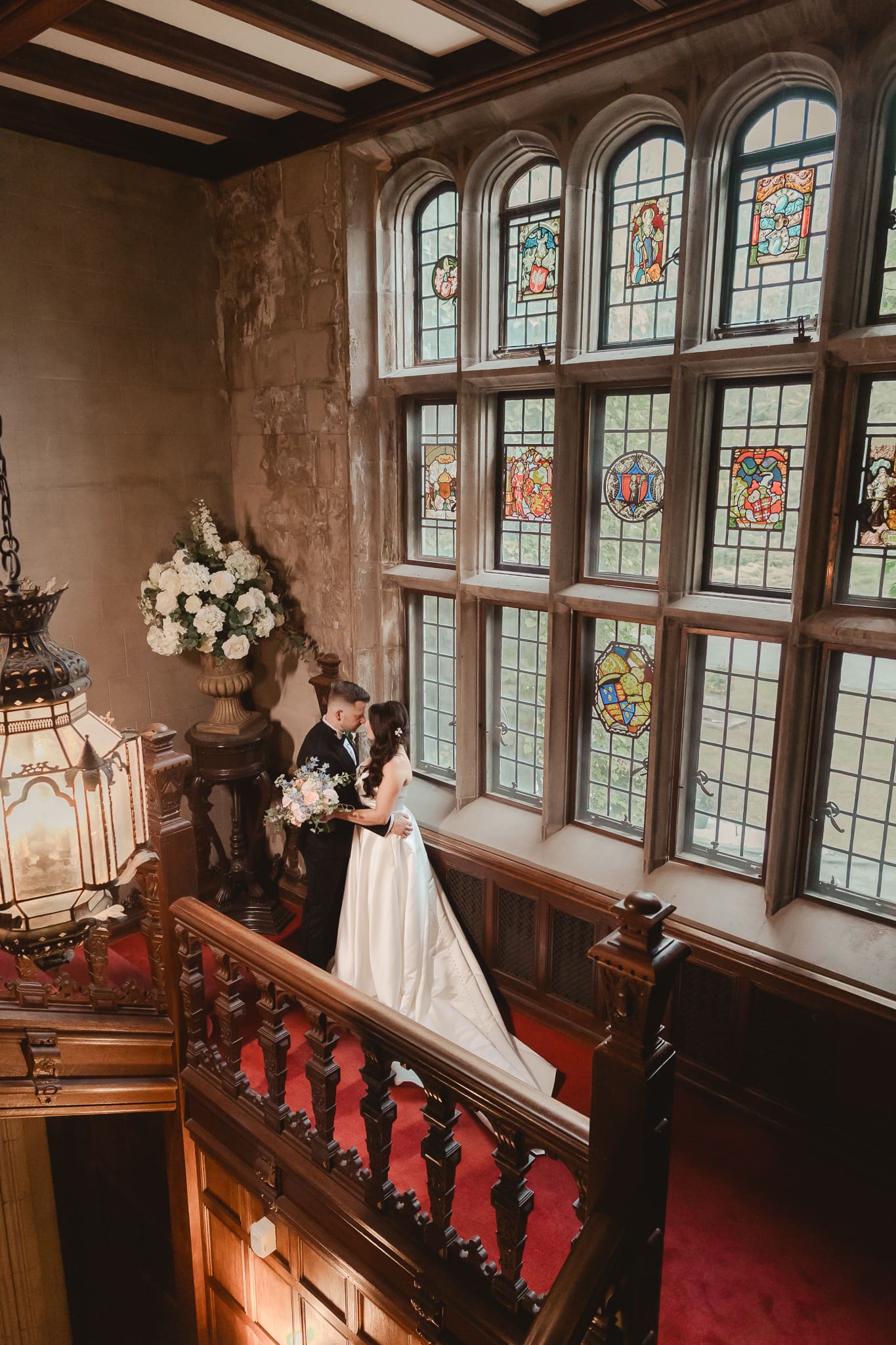 Danielle and Jason’s August wedding at Skylands Manor in Ringwood, New Jersey was a late summer celebration set against one of NJ’s most stunning castle venues. Their outdoor ceremony took place at The Reflecting Pool surrounded by the beautiful Ringwood Botanic Gardens. Having previously photographed Jason’s brother Corey’s wedding in Scotland in 2018, it felt especially meaningful to document another wedding for their family. The day was filled with warmth, friendly faces, and an easygoing energy that carried from the ceremony through the night. From classic castle portraits to dramatic nighttime images, their Skylands Manor wedding was a perfect blend of elegance, joy, and late summer magic.